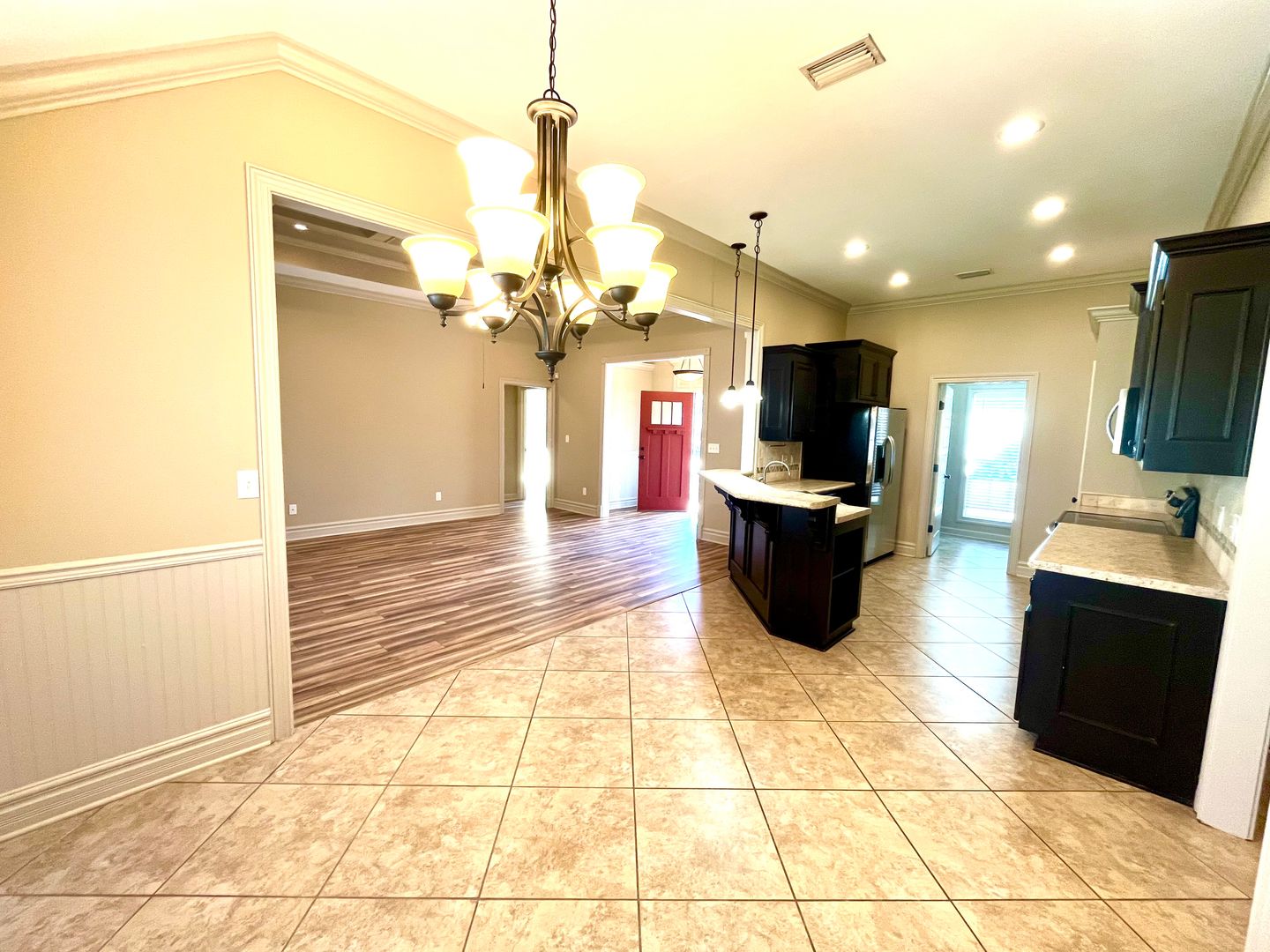 This beautiful 4-bedroom, 2-bath home in the highly sought-after Grove Pointe neighborhood offers the perfect combination of comfort, space, and style. The open-concept layout features stunning coffered ceilings, plenty of natural light, and gorgeous flooring throughout—no carpet anywhere. The spacious kitchen includes generous cabinet space, a breakfast bar, and overlooks the main living area, making it great for everyday living and entertaining. The primary suite features a tray ceiling, large walk-in closet, double vanities, a soaking tub, and a separate tile shower. The split floor plan provides privacy, while the additional bedrooms are roomy and bright. A convenient laundry room and two-car garage complete the layout. Located in Grove Pointe, one of Valdosta’s most desirable neighborhoods, this home is just minutes from shopping, dining, SGMC, MAFB, and excellent schools. This is a wonderful opportunity to enjoy modern living in a peaceful community—schedule your tour today.